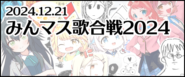 【経過】 みんマス歌合戦2024 詳細告知配信 https://live.erinn.biz/live.php?h304509048 【知らない人向け】みんマス歌合戦 全部わかる配信 https://live.erinn.biz/live.php?h494032569 合戦開催まであと1ヶ月〆切も近いよ配信 https://live.erinn.biz/live.php?h640550891 締め切り3日前ブチギレ配信 https://live.erinn.biz/live.php?h180509763 参加名乗り 締め切りは今晩中! https://live.erinn.biz/live.php?h422439811 運命のドラフト配信2024 https://live.erinn.biz/live.php?h866893853 みんマス歌合戦2024 本番! https://live.erinn.biz/live.php?h660179529 みんマス歌合戦2024 打ち上げ! https://live.erinn.biz/live.php?h749361714 |