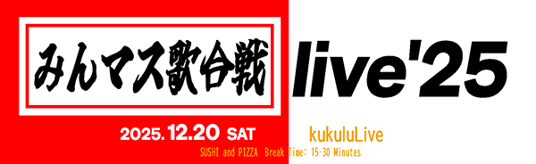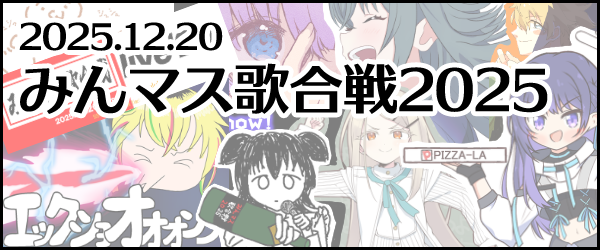 | 【出演者】 司会 岩倉(わっくP) @iwakura 紅組キャプテン でんちゅう @denchu765 白組キャプテン ナポリン @Napolin_P ただいる人 ミサワ @imas_sukidayo 【協力】 配信係・Eterniteen Age!!!編集 キビヤック @kiviak53 合戦メドレー制作 コーノ @kono___m 合戦メドレー編集 あれま @Arema_717 一ノ @horhis 投稿音源チェック あまから @amakara03 |